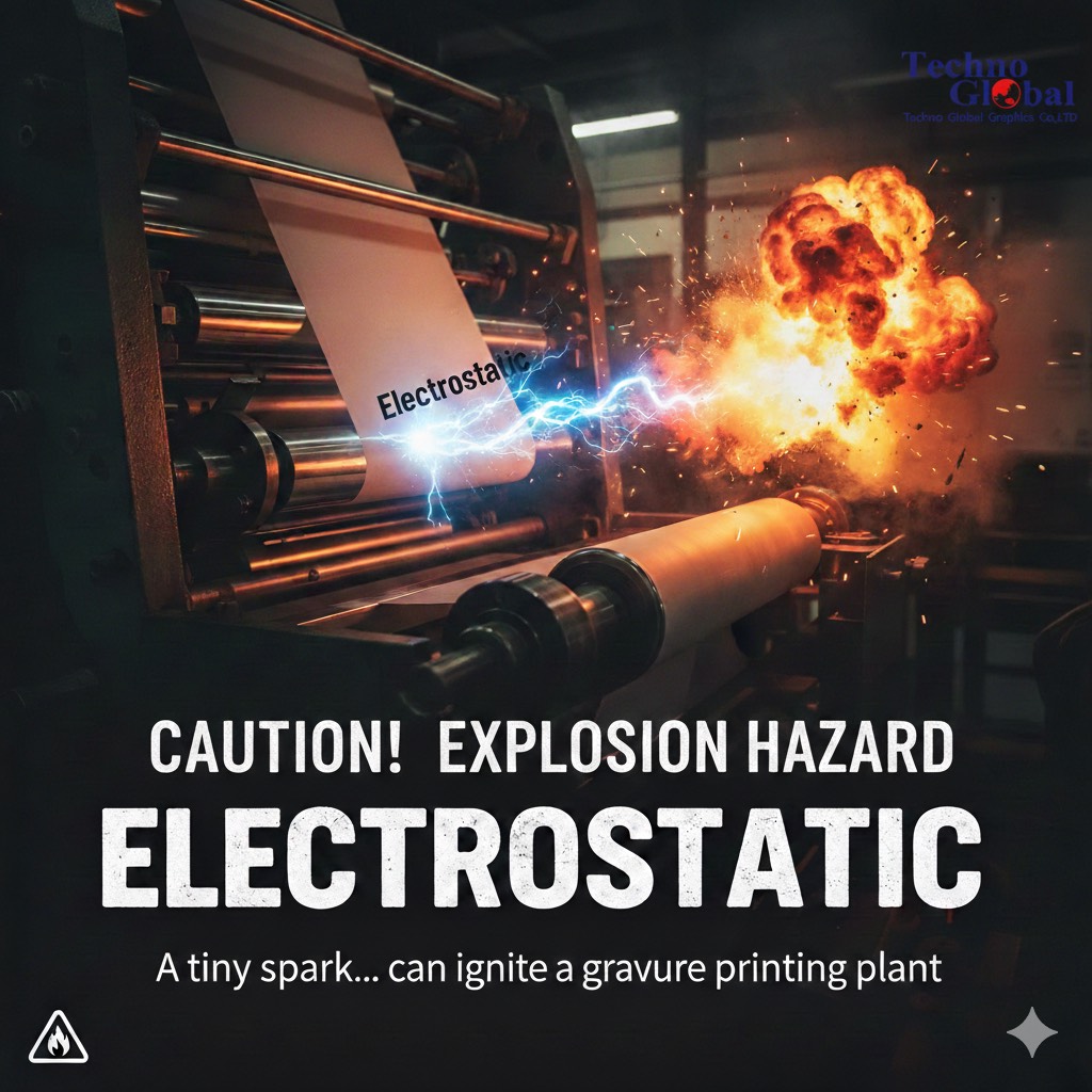 ในอุตสาหกรรมการพิมพ์แบบกราเวียร์ (Gravure Printing) สิ่งหนึ่งที่ผู้ประกอบการจะละเลยไม่ได้เลยคือ “ความปลอดภัย” โดยเฉพาะอันตรายที่มองไม่เห็นอย่าง Electrostatic หรือไฟฟ้าสถิต ซึ่งเป็นต้นเหตุสำคัญที่ทำให้เกิดไฟไหม้และการระเบิดในโรงพิมพ์มานักต่อนัก
